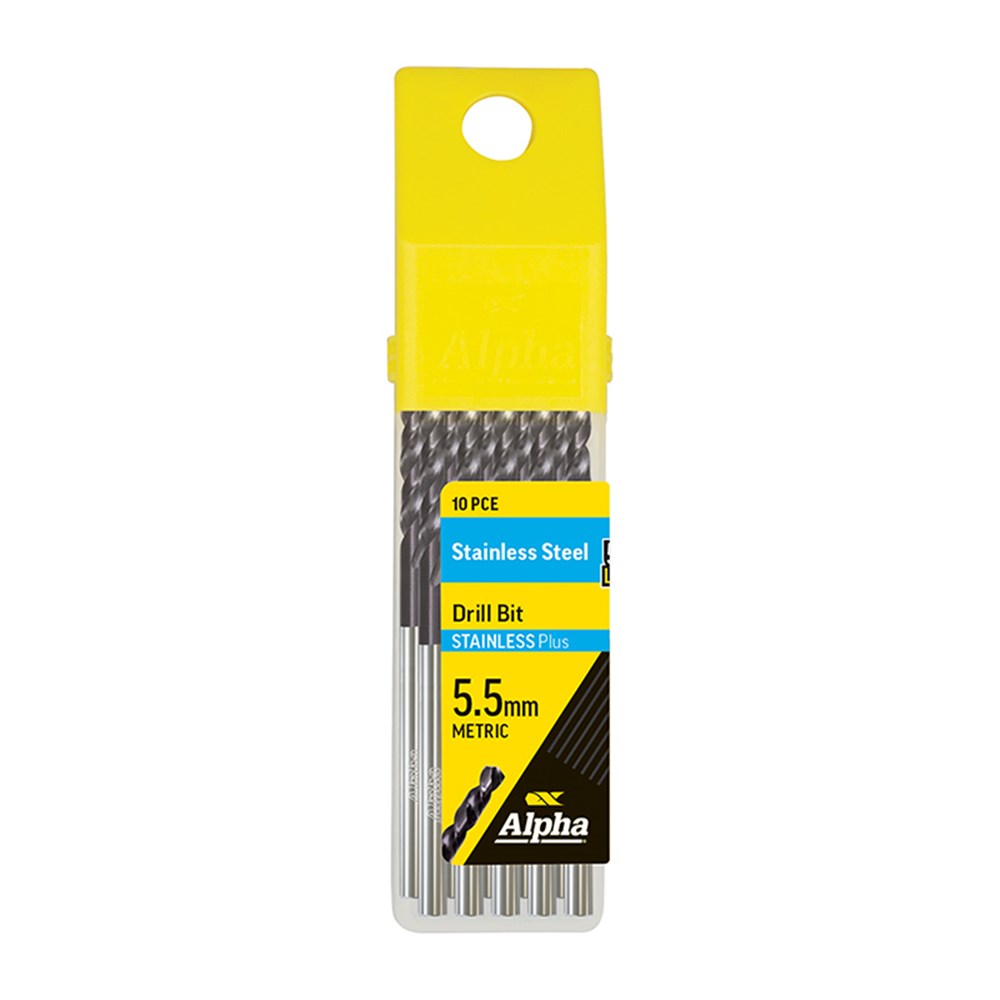 The Alpha Stainless Plus range will get your job done fast and easy! Having a special point angle for quick penetration combined with a 130 degree flute design, give you a controlled chip evacuation while still being able to tackle tough stainless materials. Alpha Stainless Plus Drills last 5 times longer than our Cobalt steel range in stainless steel, so they're a great investment!
